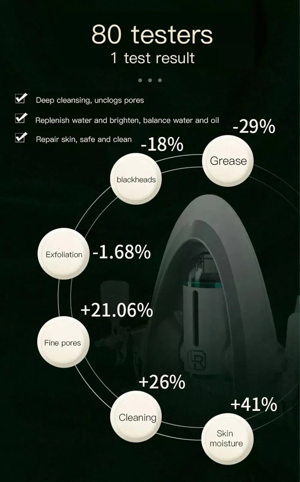 2.Cleaning&washing:Deep cleaning,clear skin statum rheum,minimally invasive scar,and clearing blackhead,