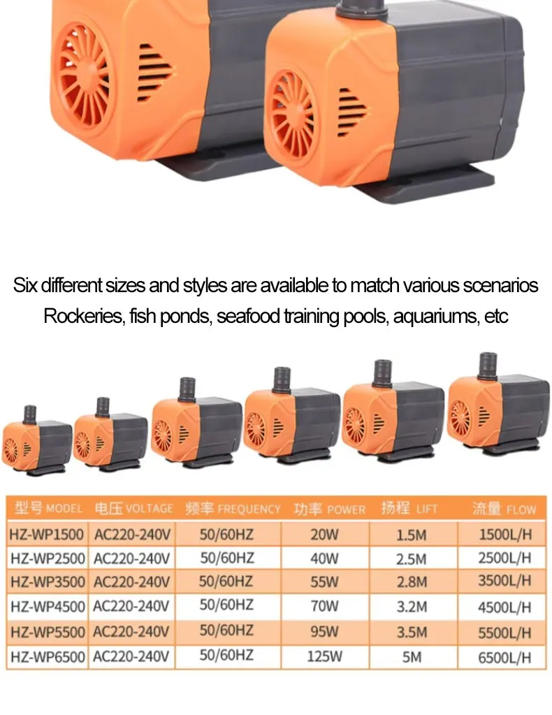 AC220V silent submersible water pump, circulating fountain pump, fish tank and pond circulating pump, garden rockery water pump