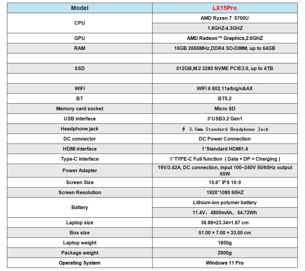 ACEMAGIC Gaming Laptop AMD Ryzen 7 5700U Radeon RX Vega 8 Graphics 15.6“FHD Display 16GB RAM 512GB NVMe SSD Laptop Computer