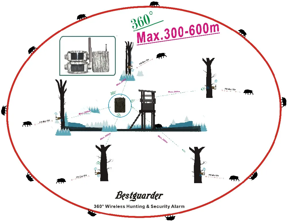 Bestguarder SY007Plus Outdoor Mini 300M range Hunting Trail Wild Animal IR Wireless Alarm System Hunting detector forest trap