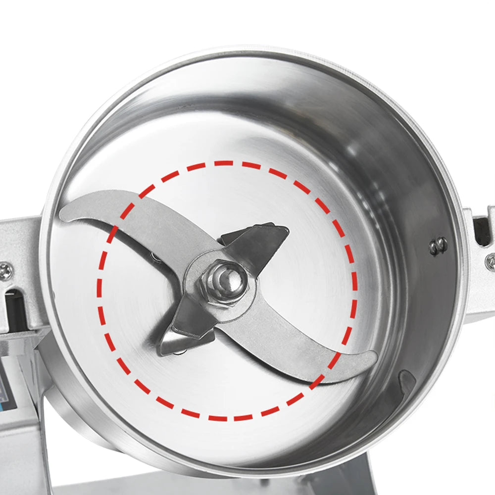 Updated 800G Grinder: Open-cover-stop Safety Design. Automatically stop when the lid is opened. The buckle design can tight the cover to prevent powder from flying