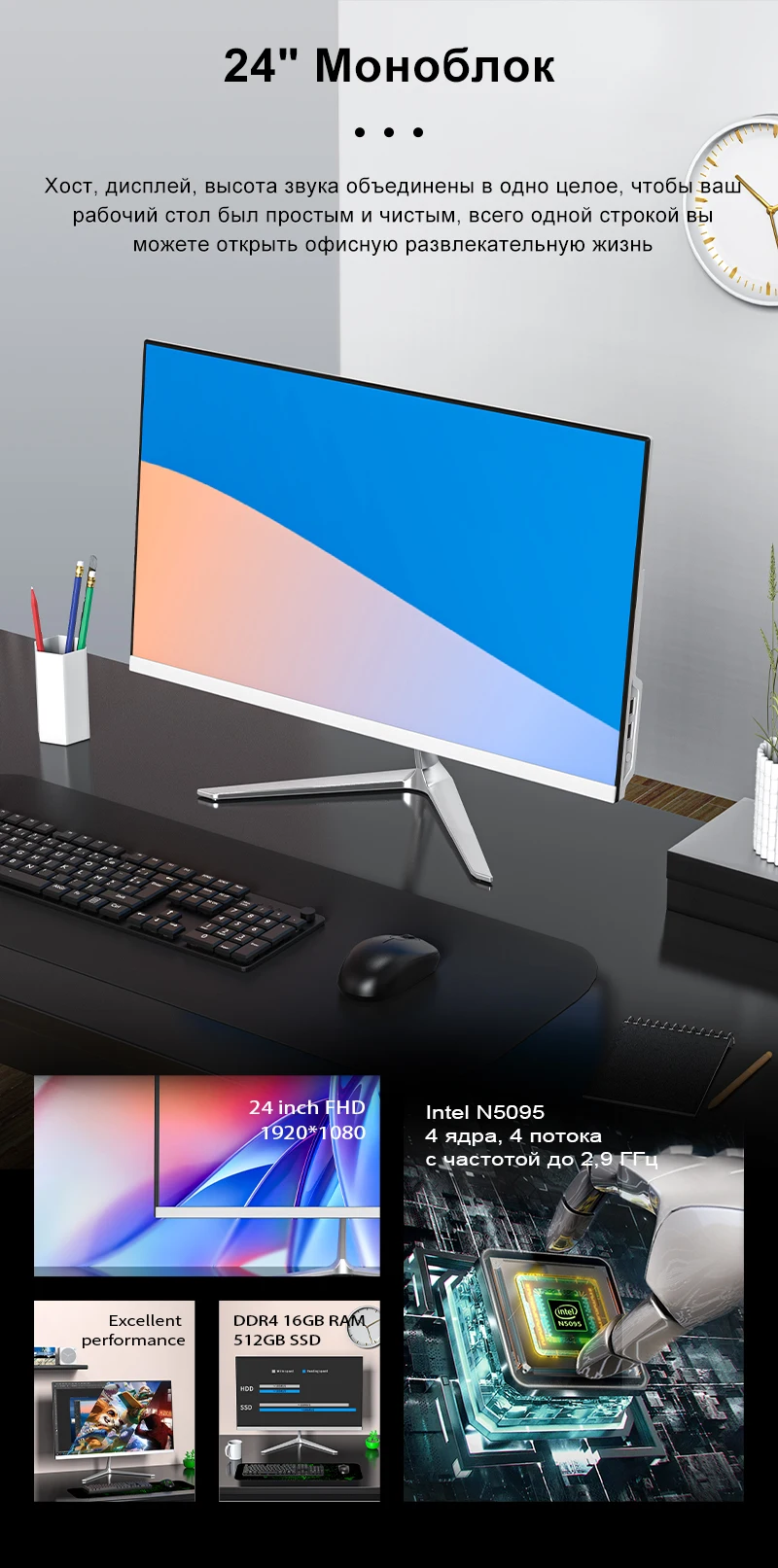 BYONE BYYI5 All In One PC 23.8inch DDR4 16G RAM 512G SSD Windows11 Inter Celeron N5095 Desktop Computer Gaming Laptops
