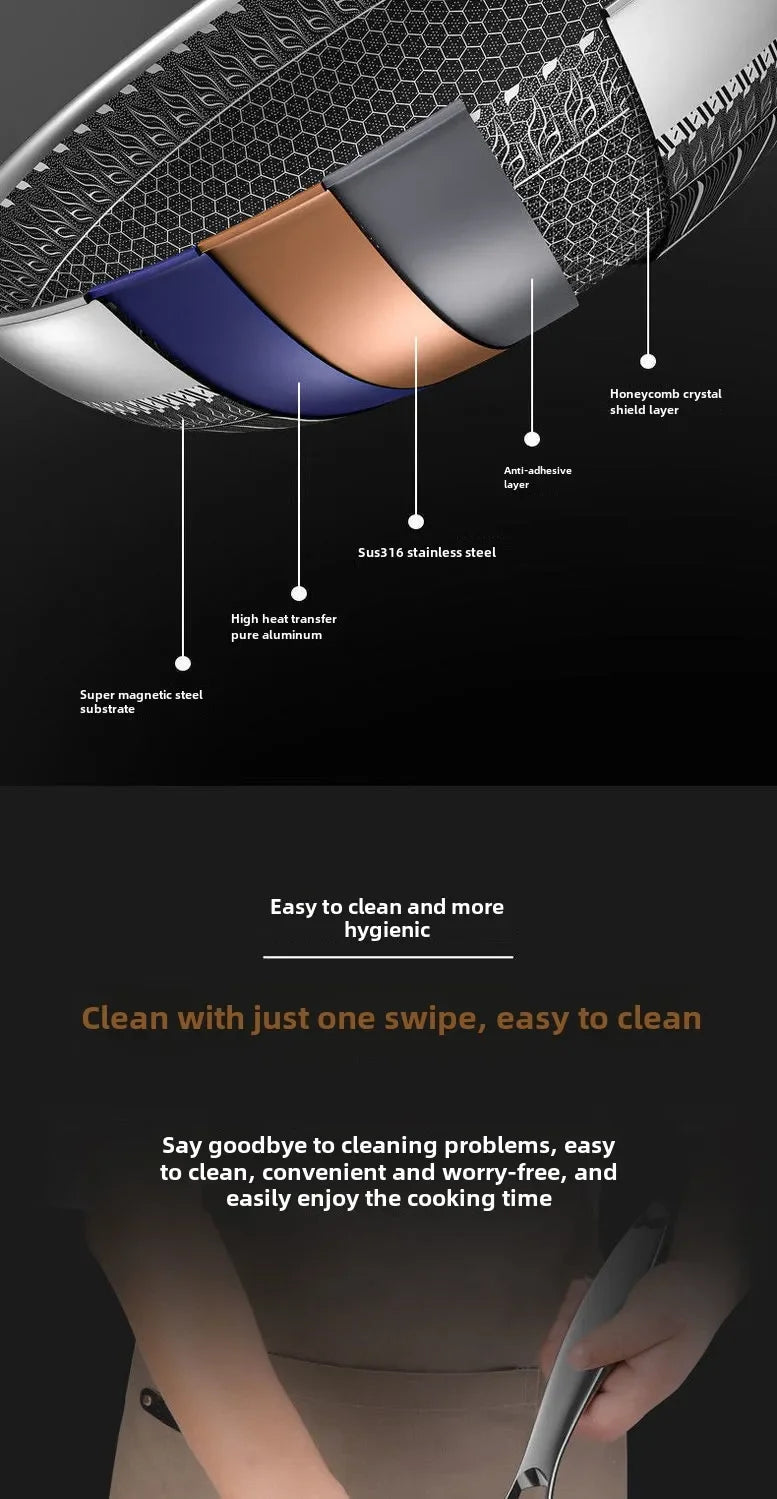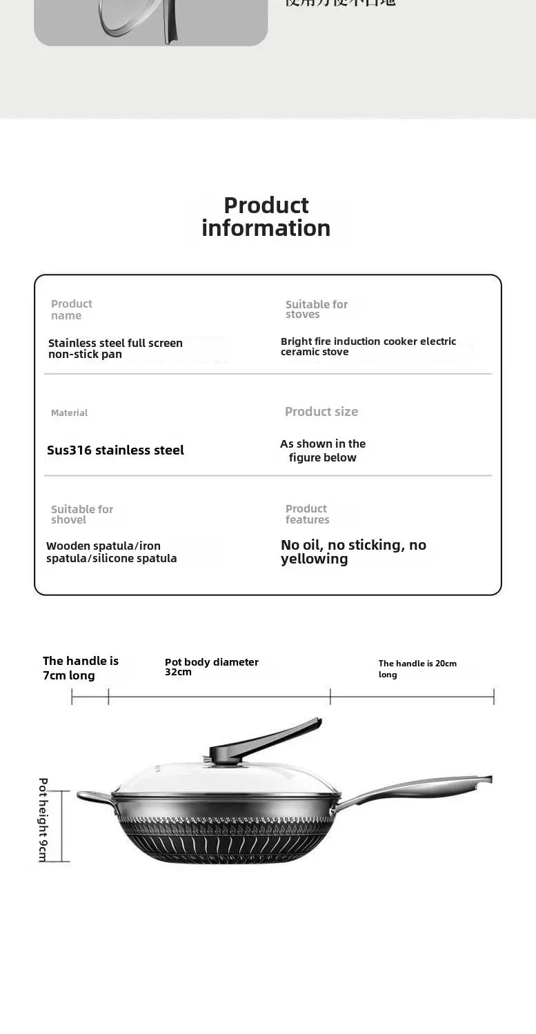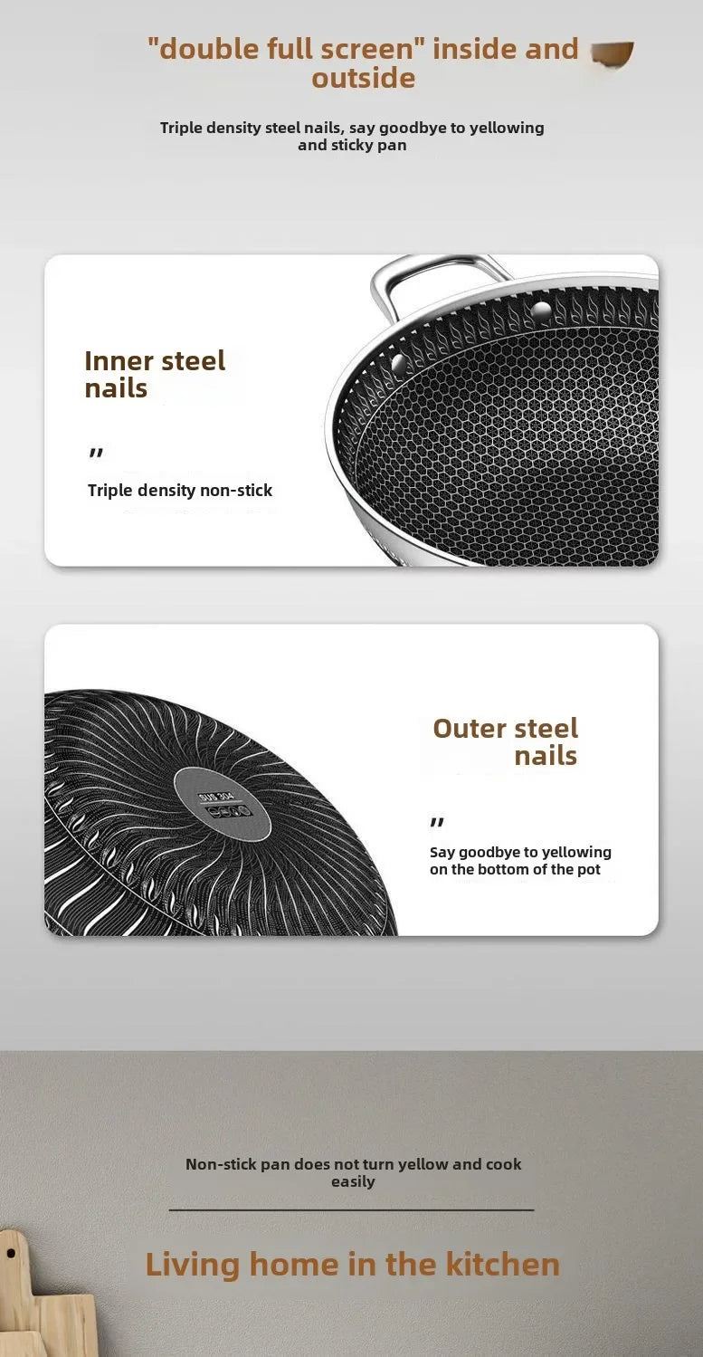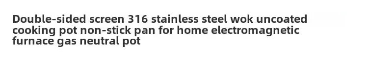Double-sided screen 316 stainless steel wok Non-coated wok non-stick household induction cooker gas universal wok
