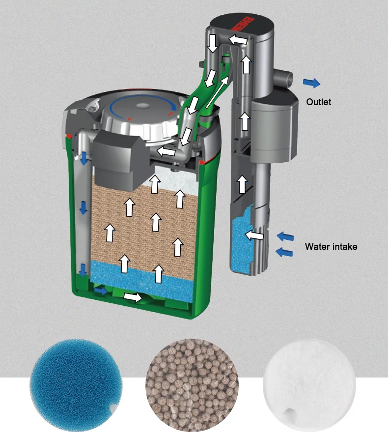 3. There are 2 models for aquariums from 20 up to 60 l (glass thick max 6 mm). Both are fully equipped with filter media and ready to use.