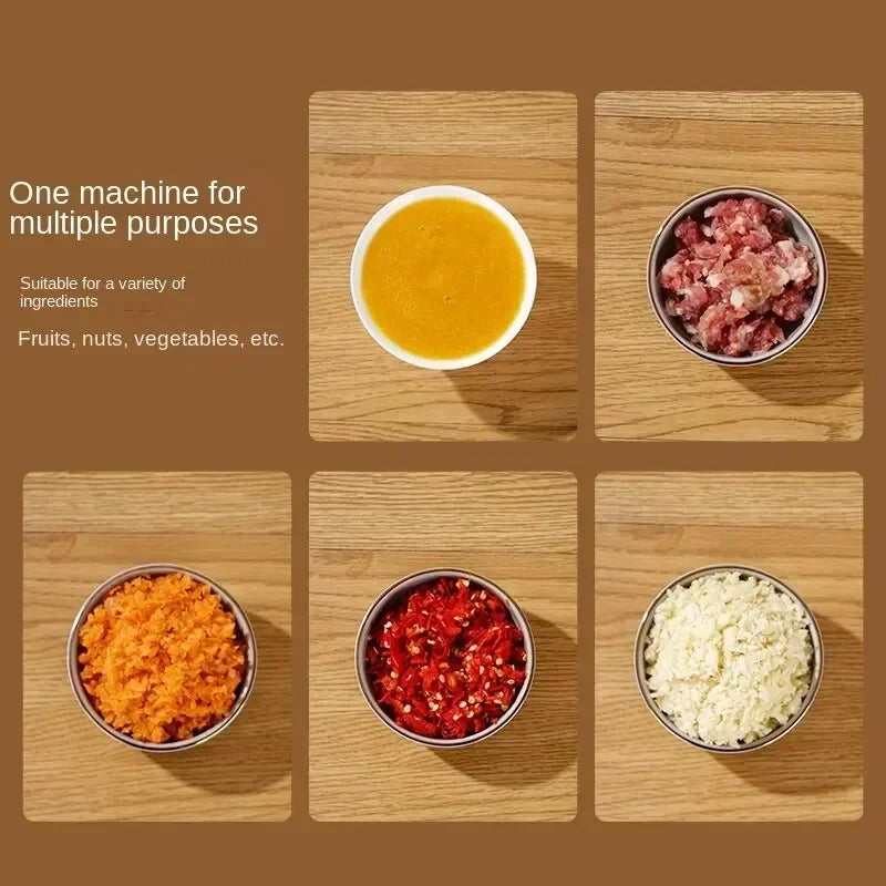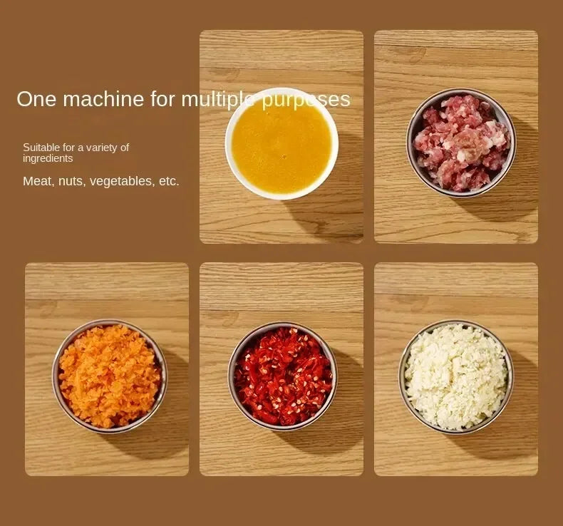 • Efficient Food Chopper :This Electric Food Chopper is a versatile kitchen tool, perfect for chopping garlic, meat, and vegetables with ease. Its compact design makes it a must-have gadget for every kitchen.
