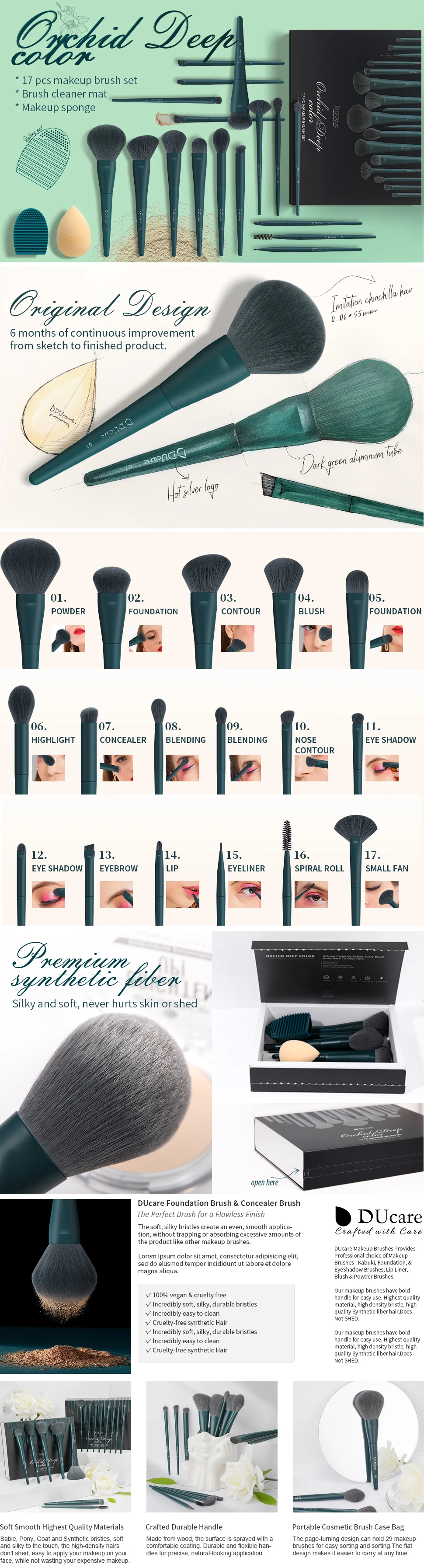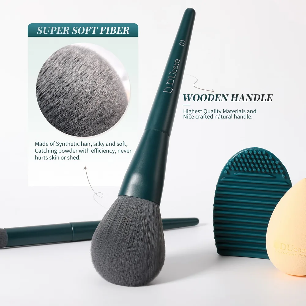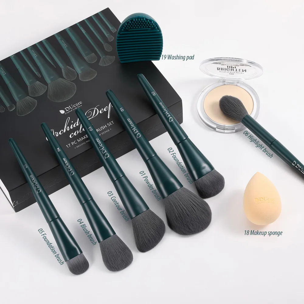 Handle Color: Green, Ships From: United States - DUcare Professional Makeup Brushes kits Synthetic Hair 17Pcs with Sponge & cleaning tools Pad for Cosmetics Foundation Eyeshadow