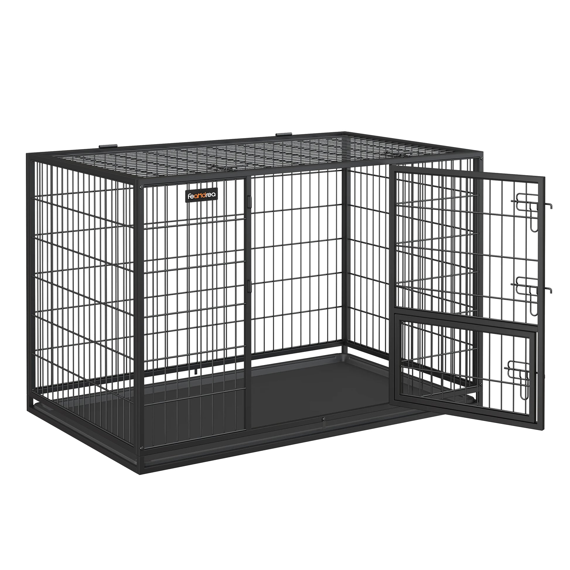 Feandrea Heavy-Duty Dog Crate, Dog Cage, 122 x 74.5 x 80.5 cm, for Medium and Large Dogs, Double Removable Door