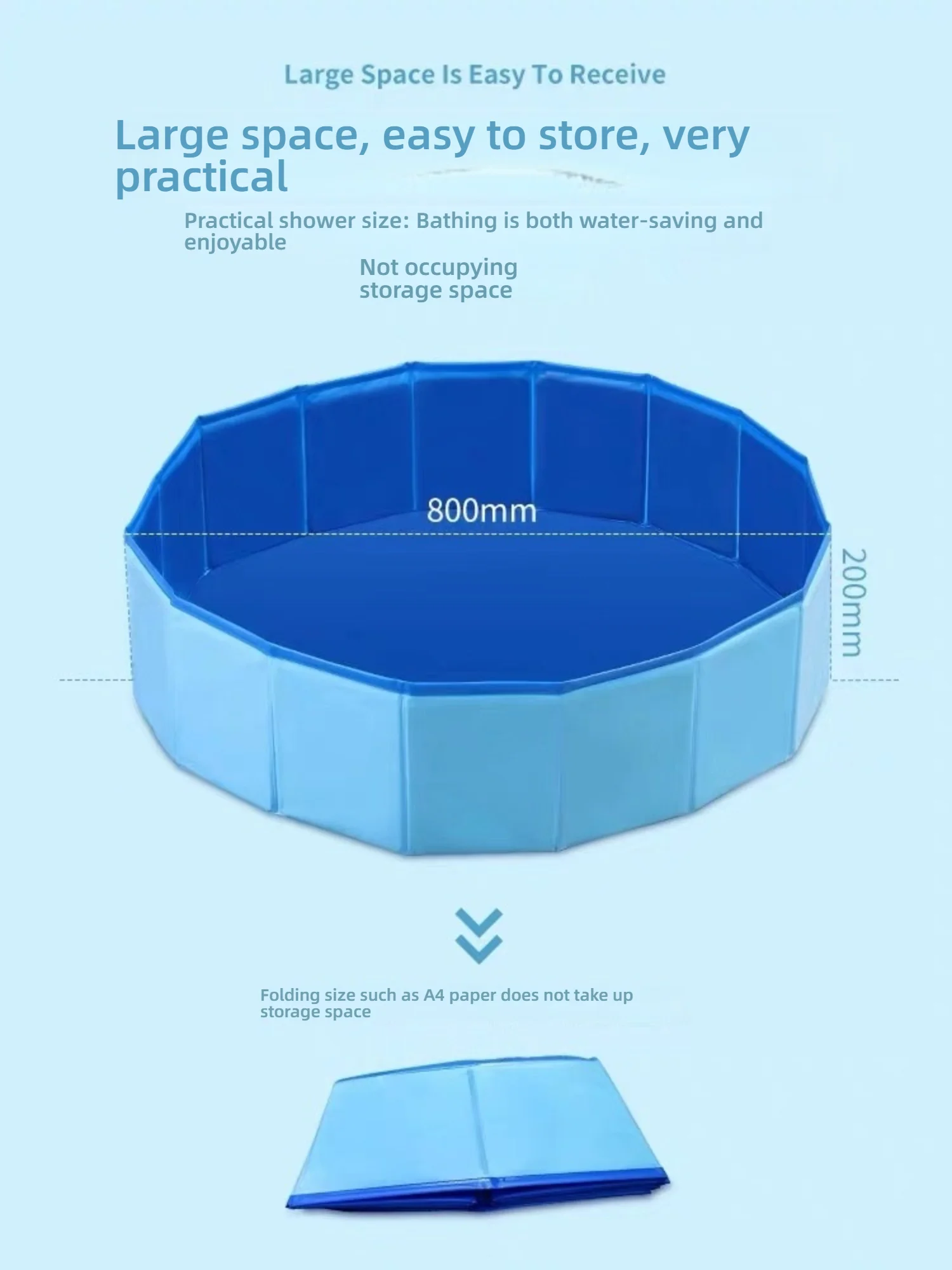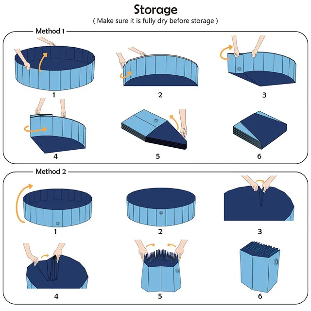 Only you need to do is a few seconds to fold it into a compact size. Just unfold the pool, fill it with water, and you can watch your dog or children play with it. You can store it in the corner or any narrow space in your room. It's easy to carry when outdoors or traveling for a convenient bath at any time.