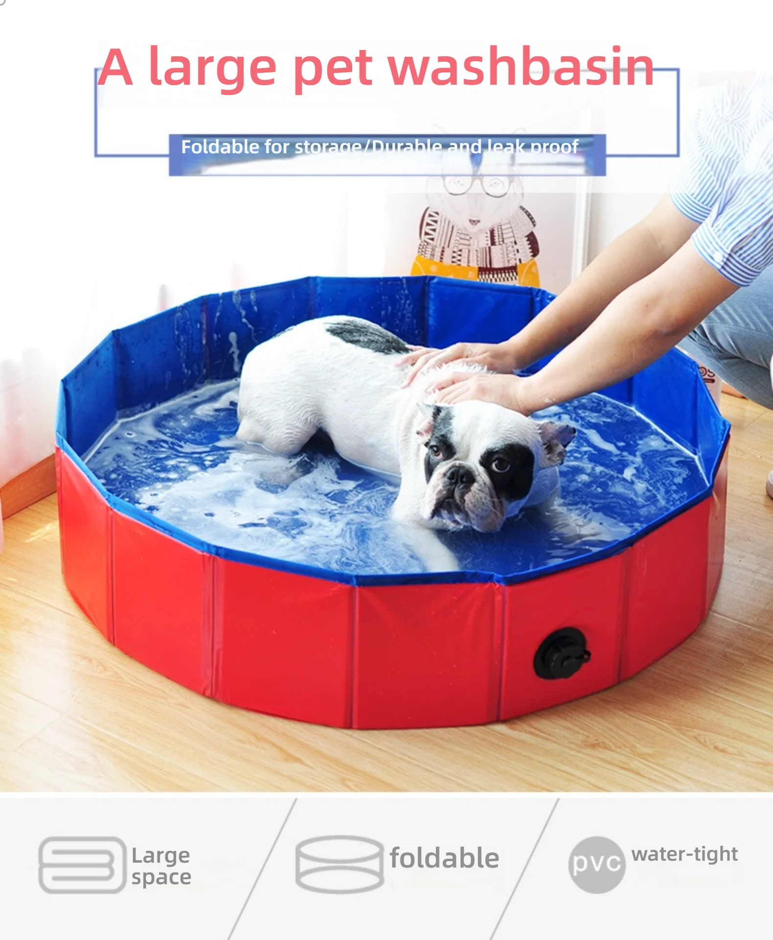 The pet pool comes with a drain valve at a low position in the pool wall, scientifically designed for natural drainage.