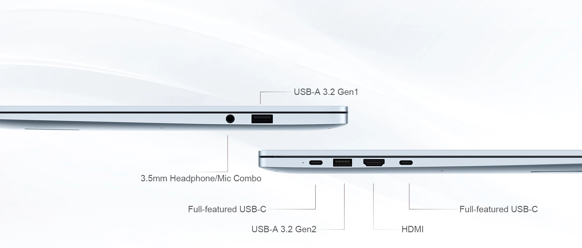 Equipped with dual full-featured USB-C ports, USB-A 3.2 Gen1 & Gen2 ports, as well as an HDMI port and a 3.5mm headphone/microphone combo jack.