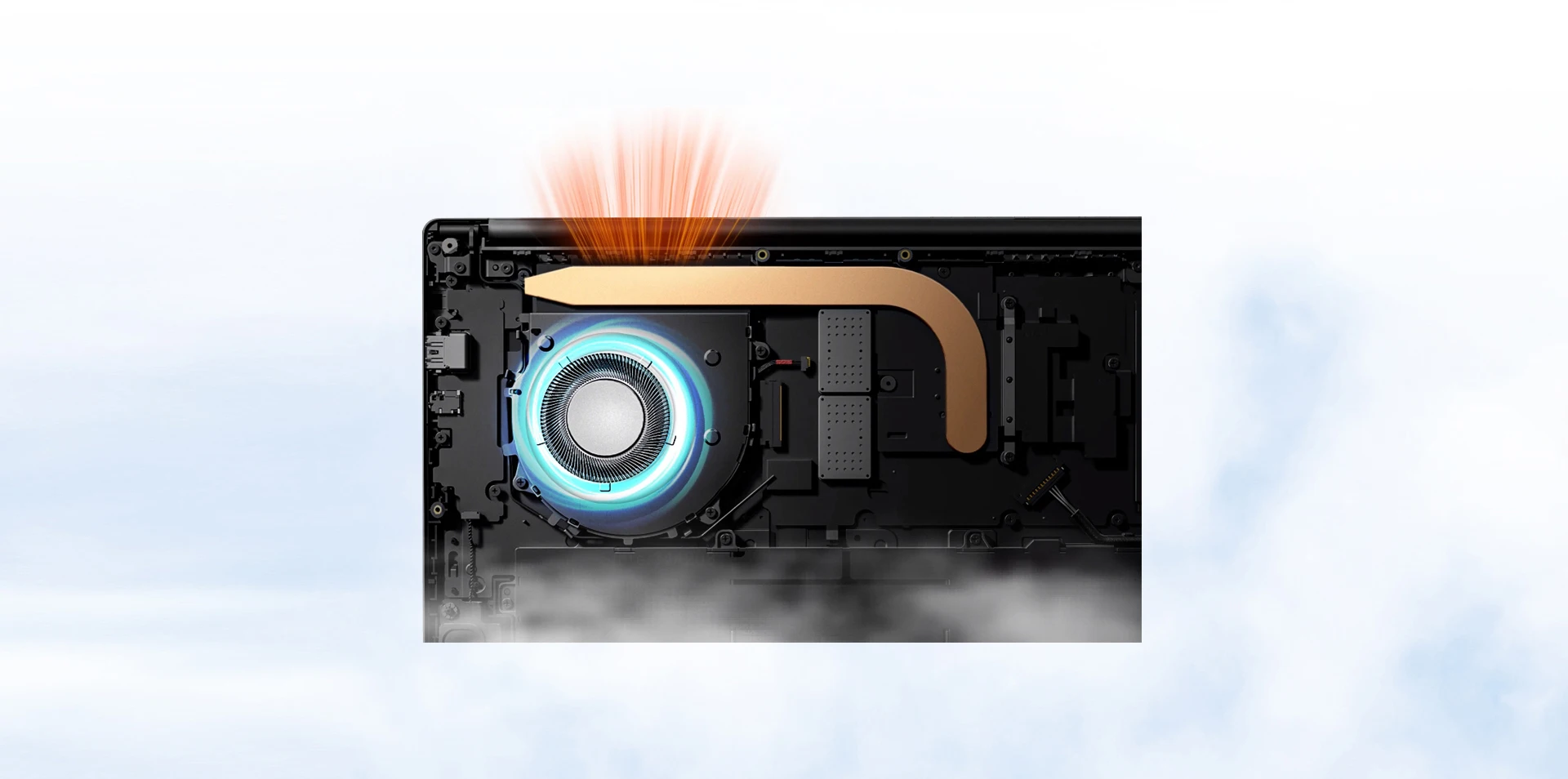 Large high-performance fan with high-density S-shaped ultra-thin blades, paired with a φ10mm wide copper heat pipe for enhanced cooling.