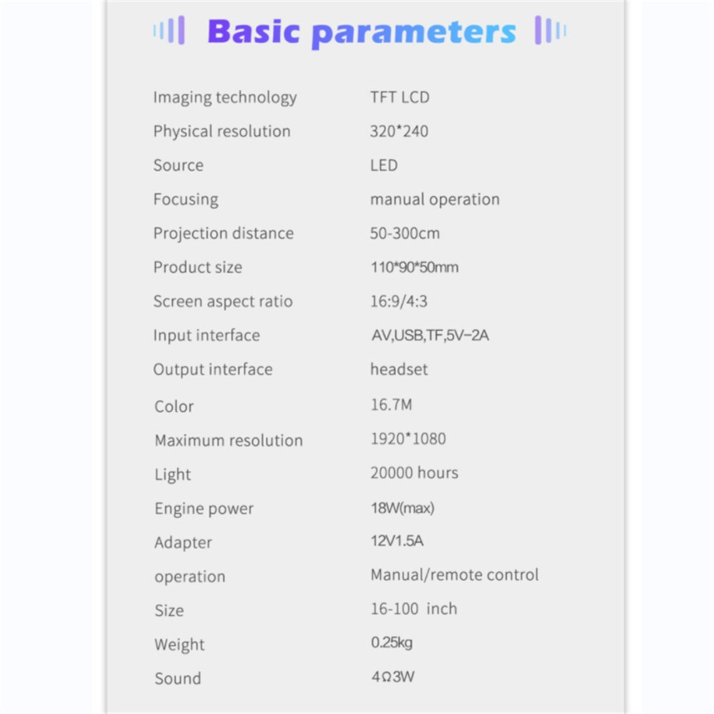 Projection size: 16-100 inches;