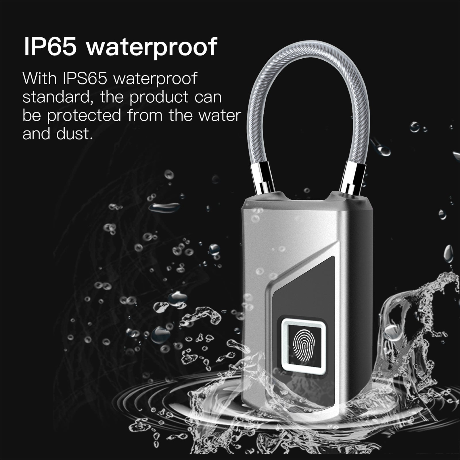 L1 Fingerprint Lock Small Keyless Biometric Smart Padlock 10 Fingerprints Storage High-Security Cable Lock For Fridge Cabinet Pantry Travel silver black