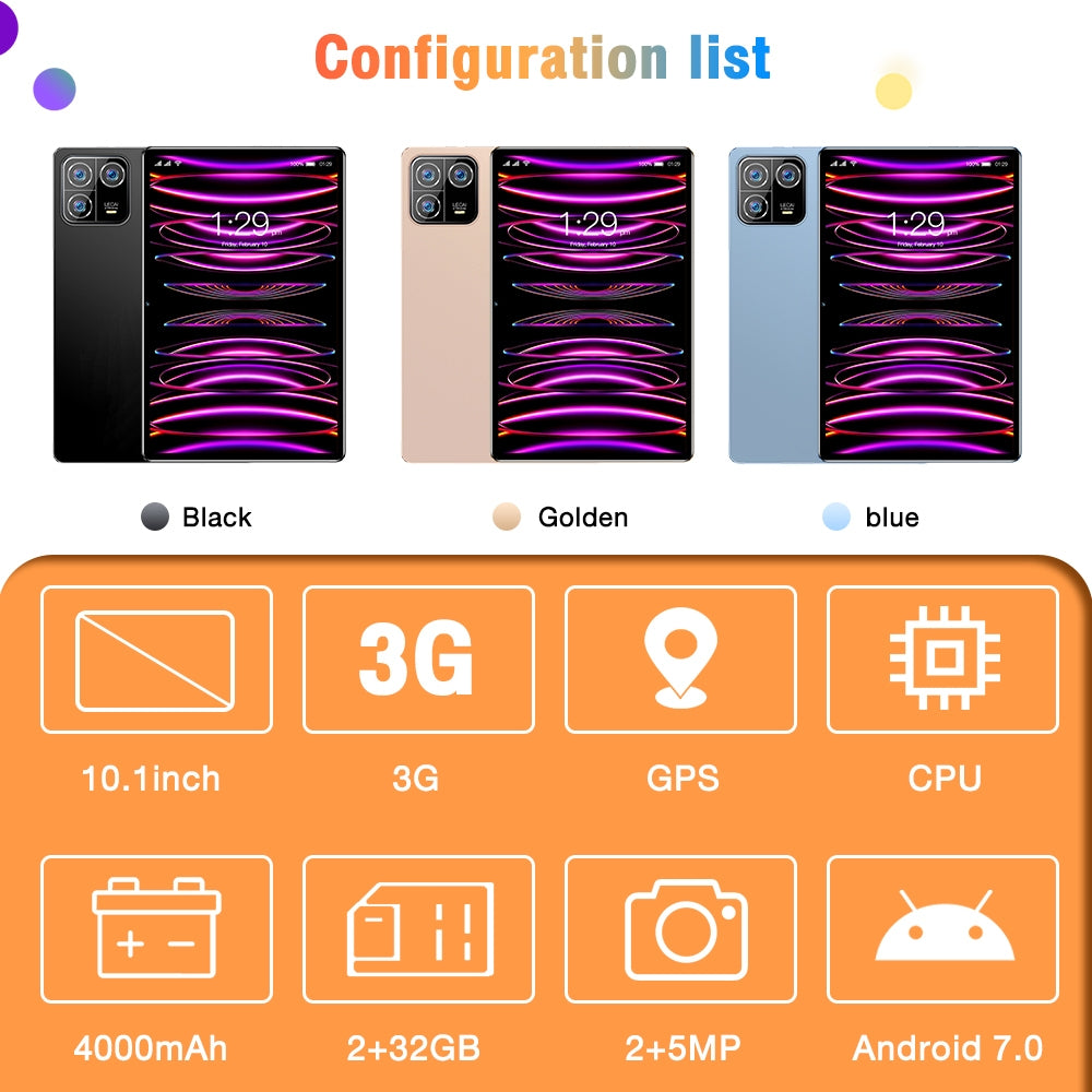 10.1 inch Pad6Max Tablet MTK6735 Quad-core 2GB RAM 32GB ROM Dual SIM 4000mAh Battery WiFi Tablet Black US Plug