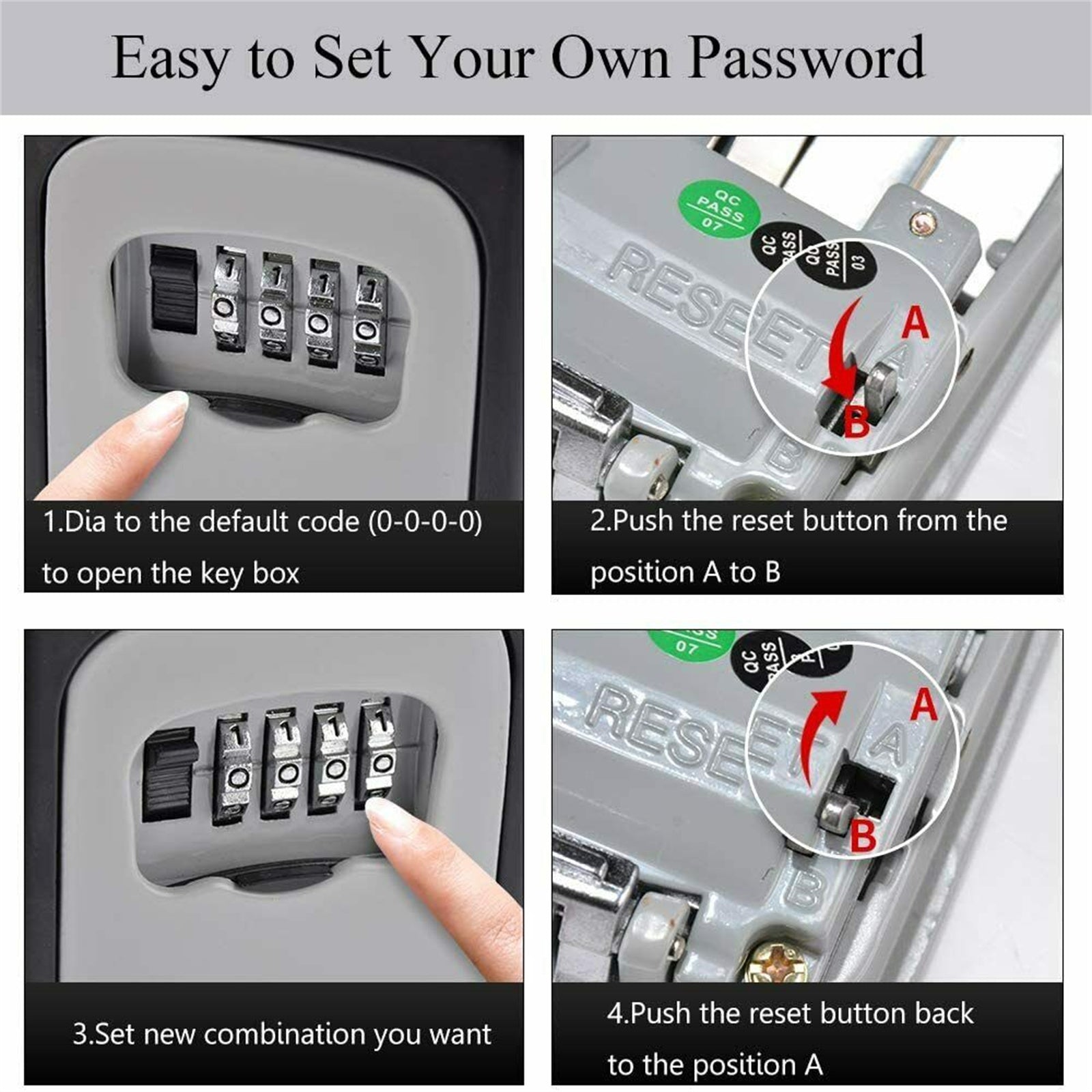 --High Security: The 4-digit combination lock box gives you 10,000 unique options to keep your keys safe; the sturdy aluminum case protects the box from hammering, sawing, or prying, while the shutter door covers the combination dial to keep your keys safe Rain and dust protection