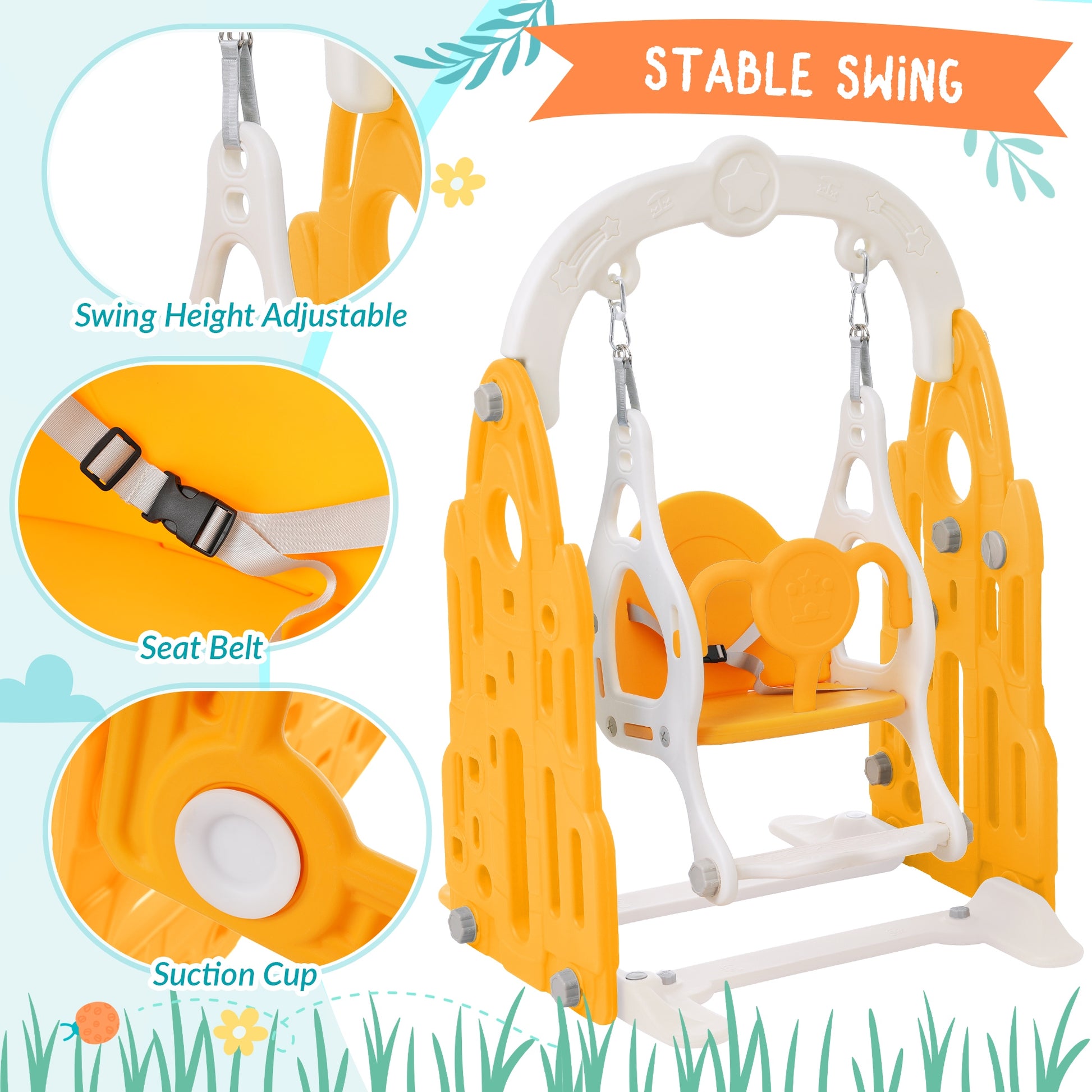 US 4 In 1 Toddler Slide Swing Set Freestanding Slide Climber Playset With Basketball Hoop Indoor Outdoor Playground Equipment For Kids Gifts blue