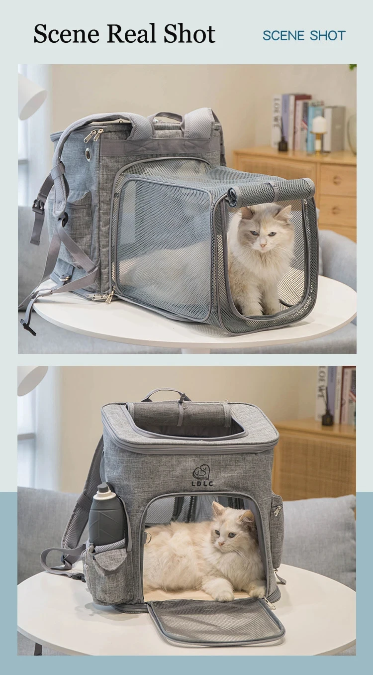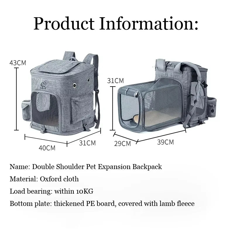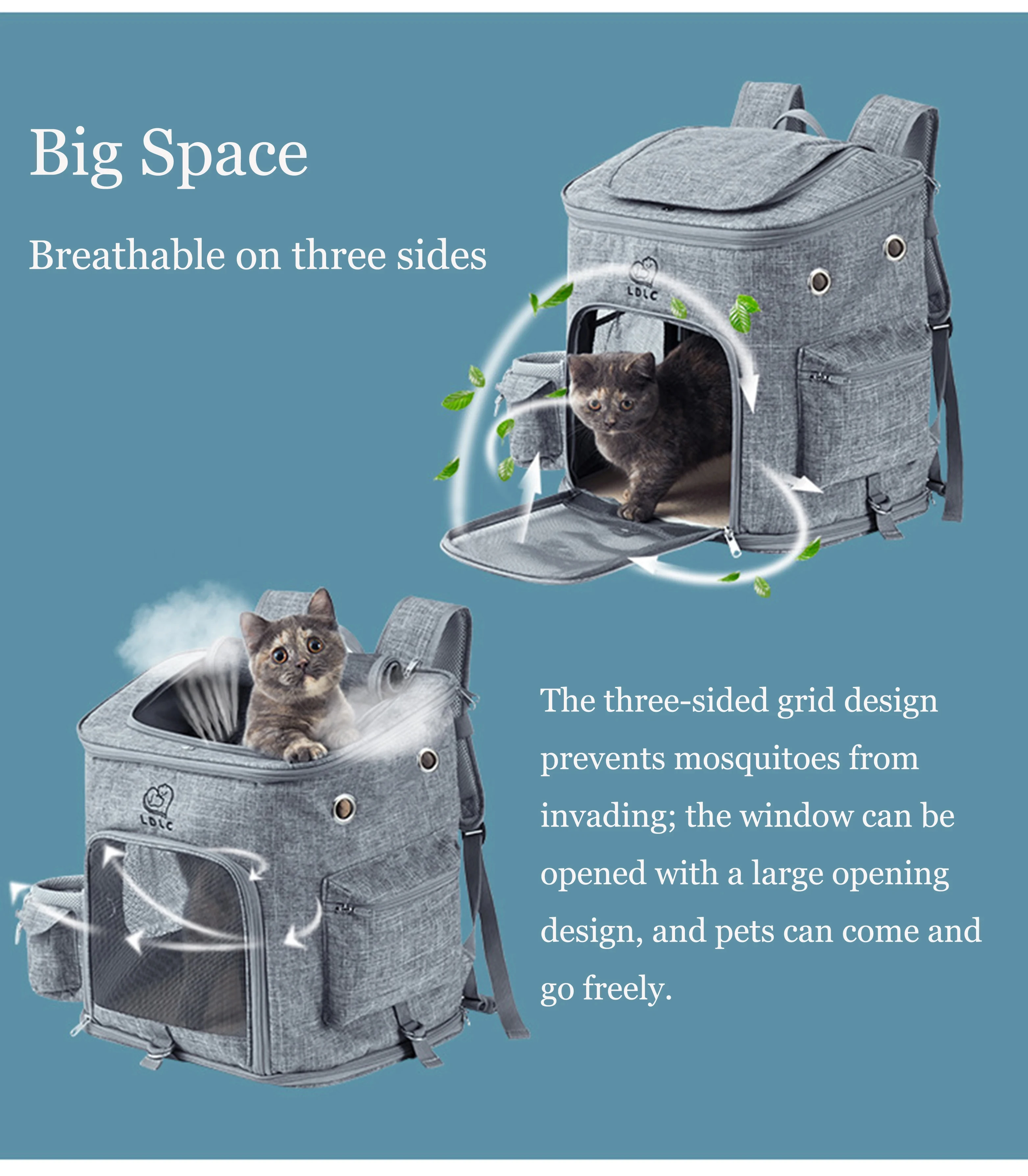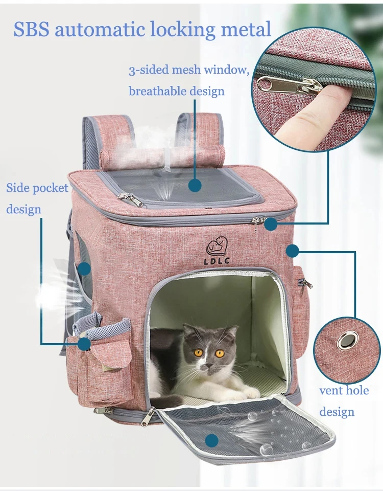 LDLC Pet Cat Backpack Large Capacity Breathable Foldable Cat Cage Expandable Oxford Cloth Pet Bag Suitable for Pet Travel