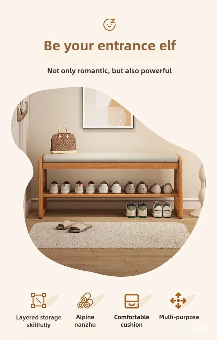 New Chinese style shoe changing stool with seating at the entrance, entrance door, shoe rack, entrance hall, household soft bag,