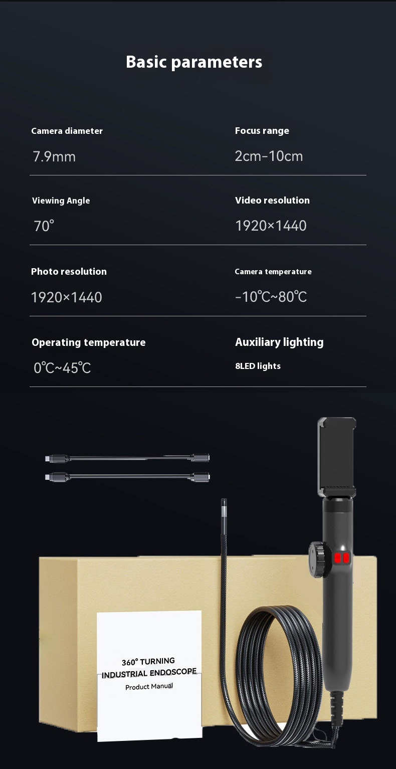 Specifications: J106 6mm X1 M - 360-degree Rotating Industrial Endoscope