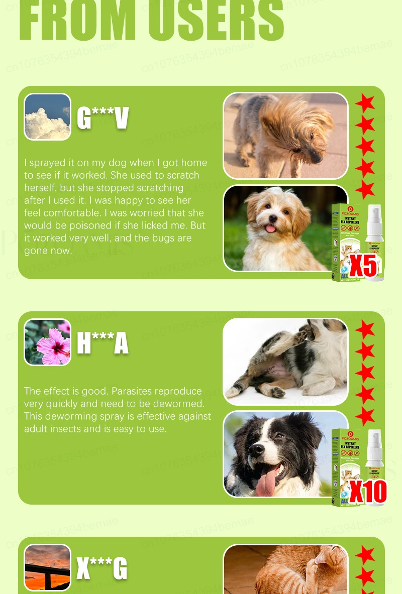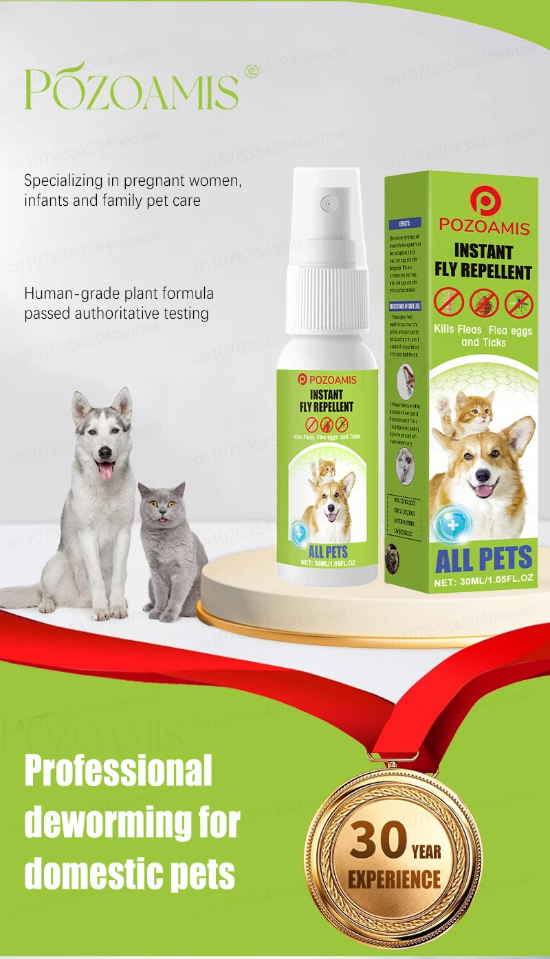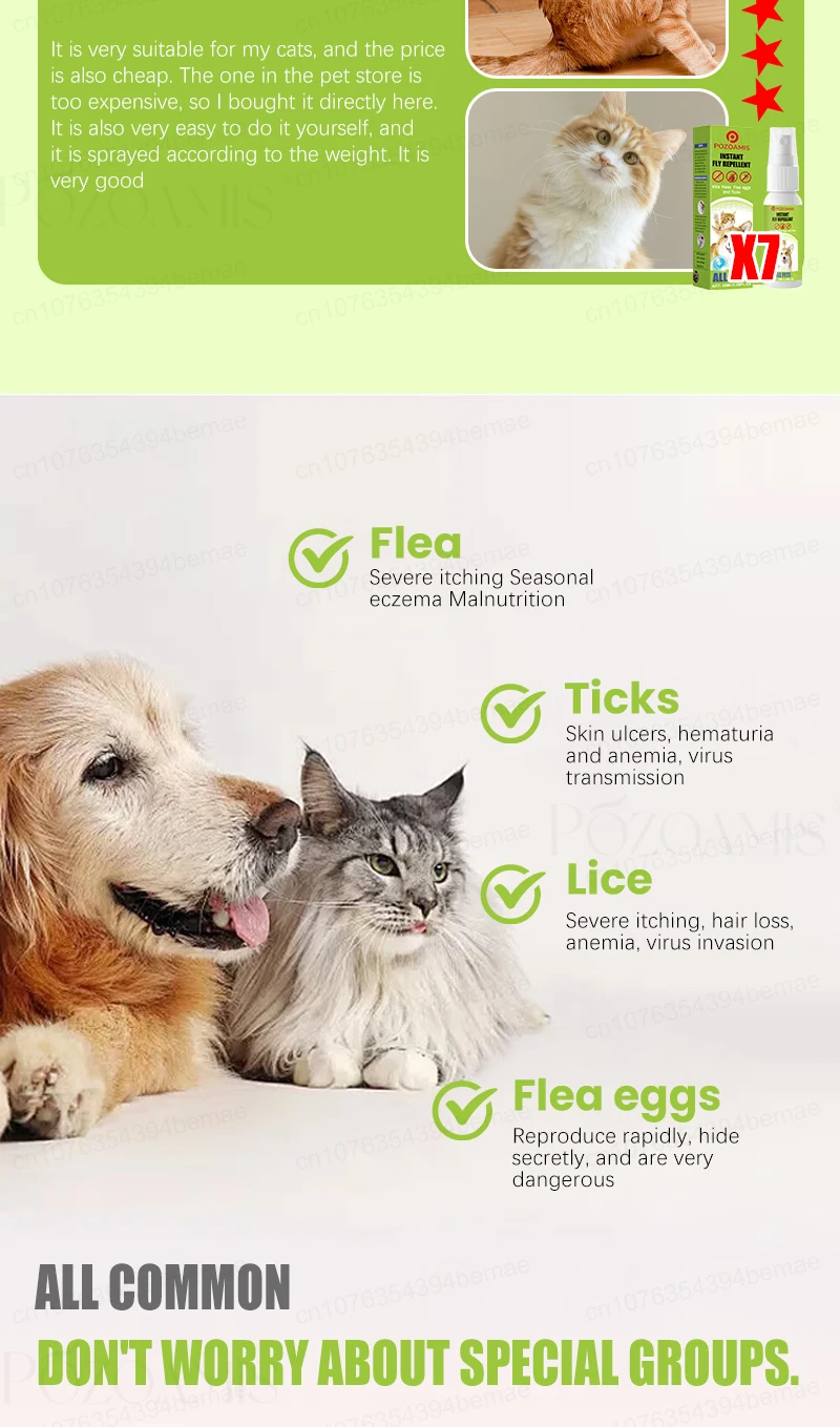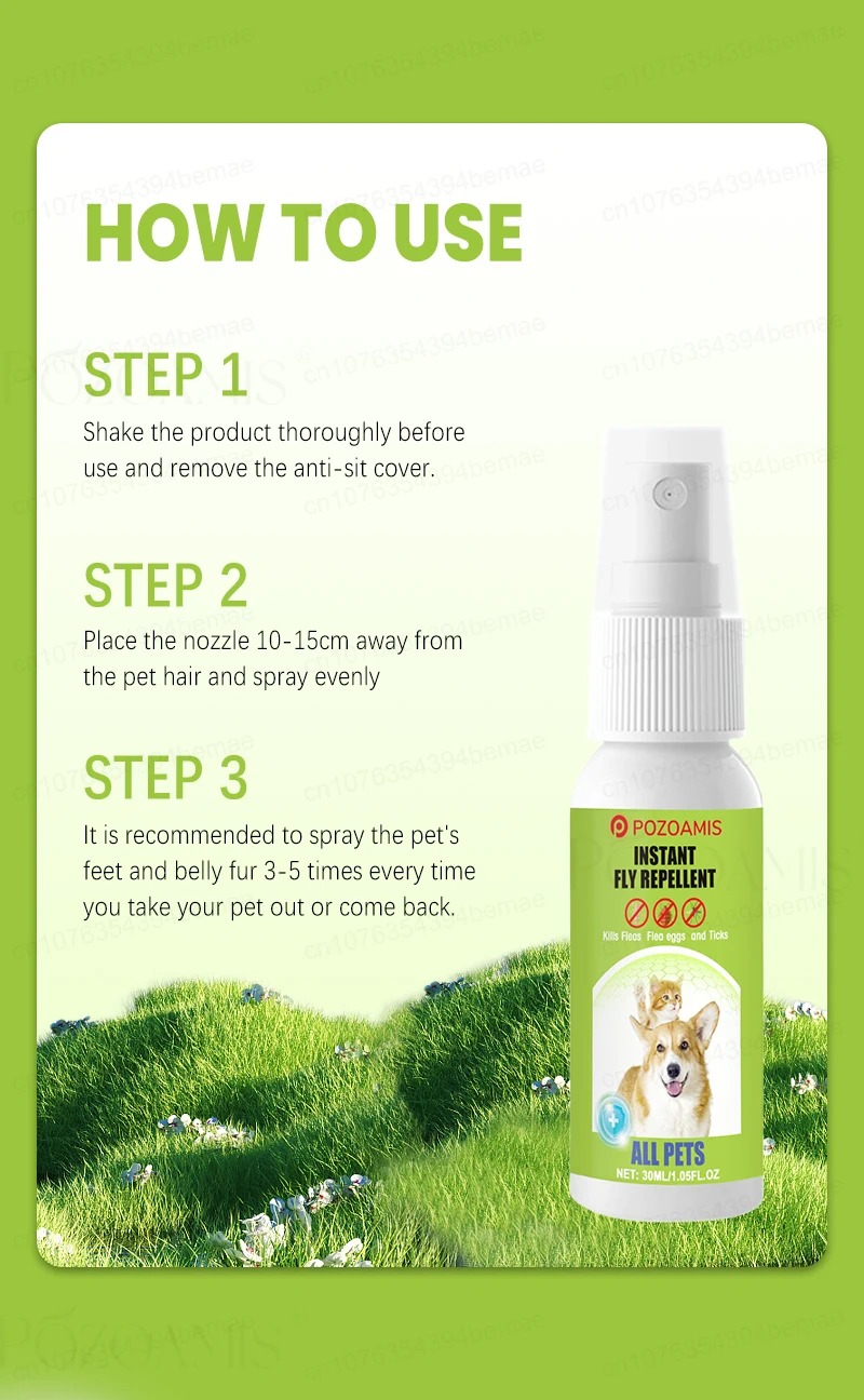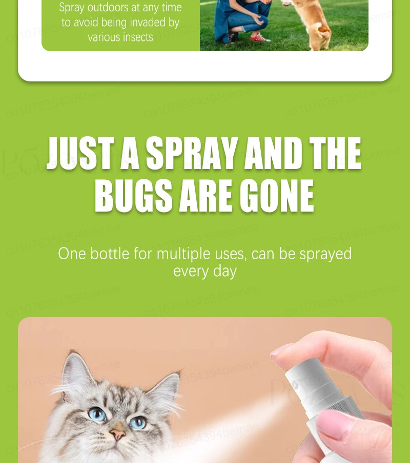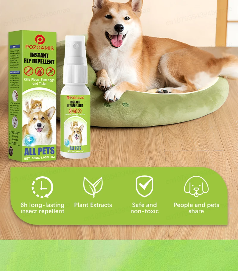 Spray anti-puces pour animaux de compagnie, dissolvant de poux, contrôle des tiques et des insectes.