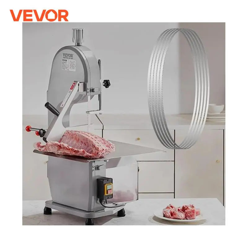These band saw blades can be used to cut various items like hard bones, frozen meat and fish, ribs, chicken, etc. They are suitable for commercial places such as the central kitchen, butcher's shop, food processing factory, and slaughterhouse.