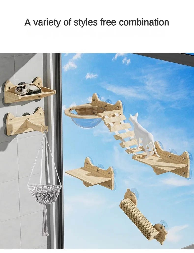 Suction Cup Cat Climbing Wooden Wall Jumping Cats Space Capsule Cat Nest Hanging Basket Pet Products Supplies Furniture