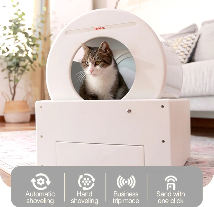 Tookfun Automatic Cat Litter Box Smart Low Noise Anti-Stick Pad Cats Toilet Self Cleaning Electric Poop Machine Pet Accessories