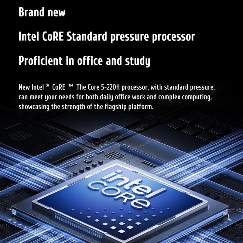 New Intel CORE TM The Core 5-220H processor, with standard pressure,Can meet your needs for both daily office work and complex computing,showcasing the strength of the flagship platform.